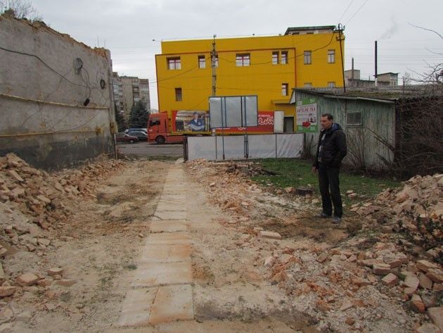 — Я тут не ночую, проживаю за місцем прописки. Сусіди вранці почули дуже сильний грохот. Нічого дивного, коли я тут сидів, із даху впала двометрова брила, то у мене земля тремтіла під ногами. Коли я приїхав, був ось такий шар цегли, — показує на метр над землею. — Ми подзвонили у міську раду. Вони пере направили у районну раду. Приїхав трактор, і вони тут частково порозчищали. І поїхали.