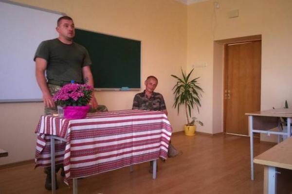 Після завершення урочистої частини у гімназії провели перший урок. До старшокласників запросили учасників бойових дій в АТО Романа Короля і Олександра Коваля.
