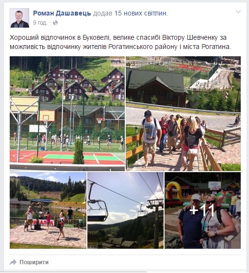 Володимир Цвіль – не єдиний кандидат у нардепи виборчому окрузі №85, дії якого можна розцінити як непрямий підкуп. Так, користувач Facebook Роман Дашавець 27 червня на своїй сторінці публічно подякував кандидату Віктору Шевченку («Українське об’єднання патріотів - УКРОП») за організований відпочинок, проілюструвавши екскурсію світлинами. «Хороший відпочинок в Буковелі, велике спасибі Віктору Шевченку за можливість відпочинку жителів Рогатинського району і міста Рогатина», - написав Дашавець.