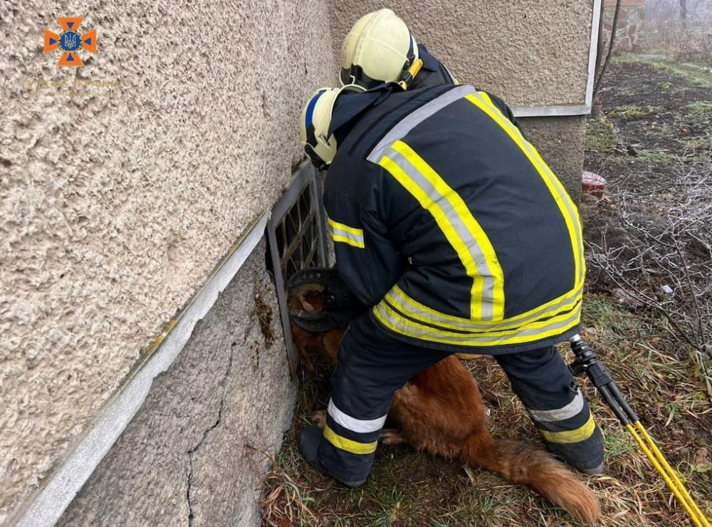 Рятувальники вивільнили собаку з вентиляційної решітки житлового будинку.