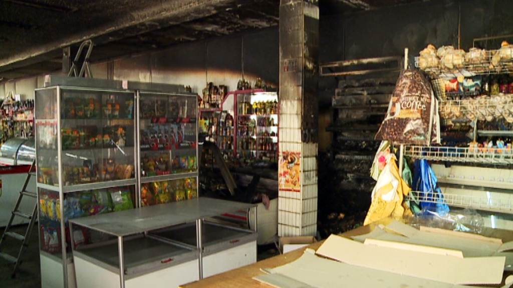 О першій ночі у центрі Коломиї на вулиці Мазепи горів супермаркет. Вогонь знищив холодильник, меблі, закопчено стіни та продукцію. Через сильне задимлення у приміщенні рятувальникам протягом 38 хвилин довелося працювати в апаратах захисту органів дихання та зору. Попередня причина виникнення пожежі - коротке замикання електромережі. Відео: НТК
