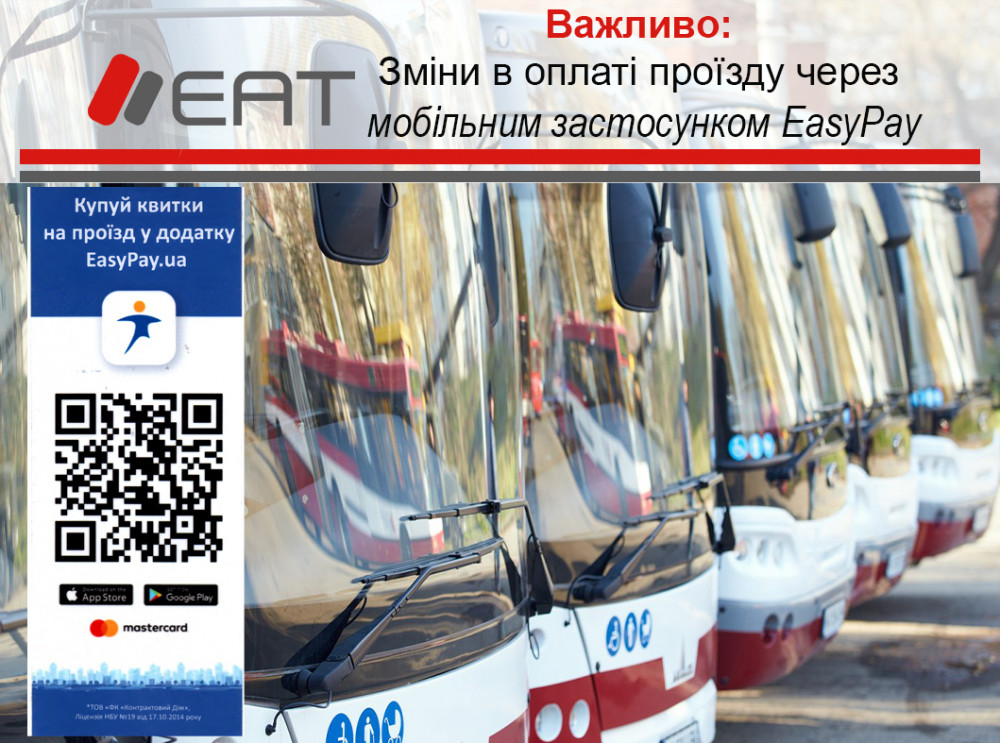 КП Електроавтотранс повідомили про зміни в оплаті проїзду через мобільний застосунок EasyPay за QR-кодом у комунальному транспорті.