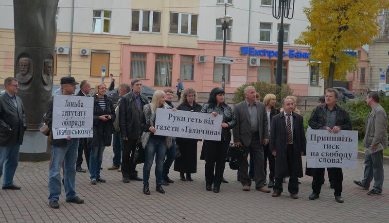 Про це йдеться на сайті газети. Про суд між депутатом облради Ярославом Ткачівським і редакцію, «Галичина» інформувала у матеріалах «Сутяжництво ціною в два мільйони» та «Судний день «Галичини» у випусках відповідно за 25 вересня та 18 жовтня.
