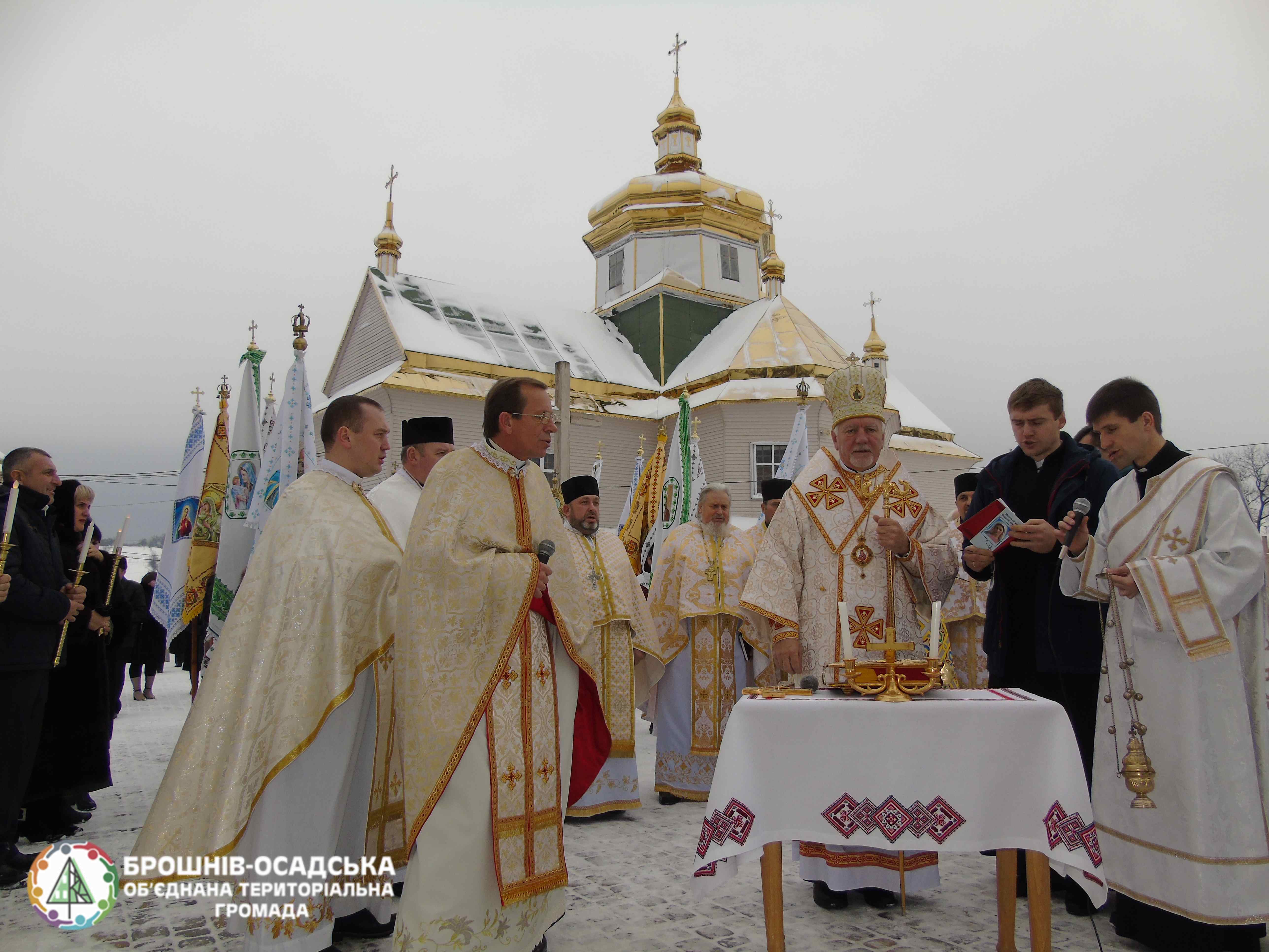 Місцевий священик о. Микола Гасяк запросив Предстоятеля очолити святкове богослужіння. Після Святої Літургії Владика висловив слова вдячності усім, хто спричинився до спорудження дзвіниці, за їхній вклад в розвиток парафіяльного життя та вручив подячні грамоти жертводавцям та доброчинцям, які своєю працею долучилися до важливої, великої справи. Очільник Брошнів-Осадської ОТГ Назарій Іванів та о. Микола Гасяк подякували Архієрею за пастирські відвідини, за молитву, за благословення у такий важливий для громади день.
