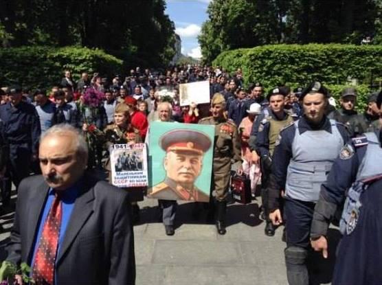 Близько 12.00 години 30 осіб переважно похилого віку намагалися пройти до Парку Слави, тримаючи у руках портрет Сталіна. Це і стало причиною конфлікту.