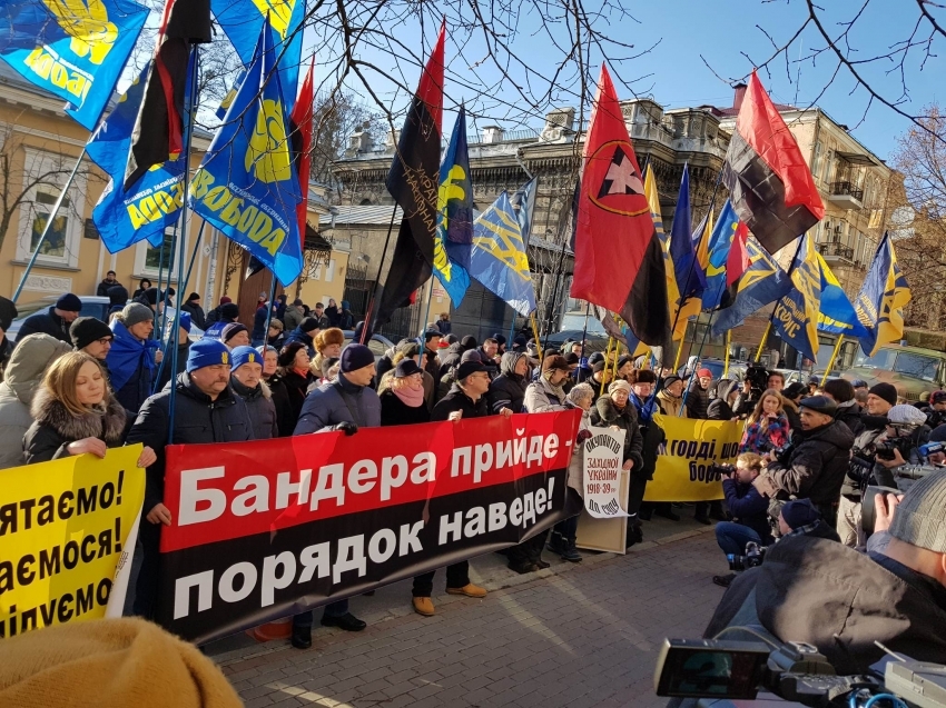 Мітингувальників обурило ухвалення польськими Сеймом і Сенатом змін до закону про Інститут національної пам'яті Польщі, так званий закон «про заборону бандеризації». Учасники акції вважають, що цим законом поляки принижують українську національну гідність, адже він передбачає кримінальне переслідування за бандерівську ідеологію. Націоналісти вимагають, щоб президент Польщі Анджей Дуда не підписував цей закон.