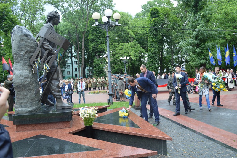А голова Івано-Франківської обласної ради Олександр Сич, міський голова Руслан Марцінків та заступник голови ОДА Ігор Пасічняк поставили квіти до могил Січових стрільців, героя Небесної сотні Романа Гурика та військових, похованих у Меморіальному сквері захисників.