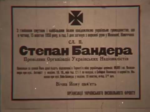 Після завершення служби під спів "Вічная пам'ять" труну з тілом Степана Бандери виносять з церкви 8 чоловік. Труну накрили синьо-жовтим українським прапором.