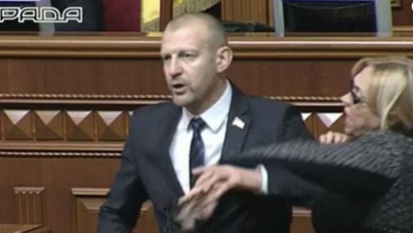 У Мережу виклали відео з двох камер верховної ради, на одному з яких видно інцидент, який стався напередодні між депутатами Олександрою Кужель та Андрієм Тетеруком.