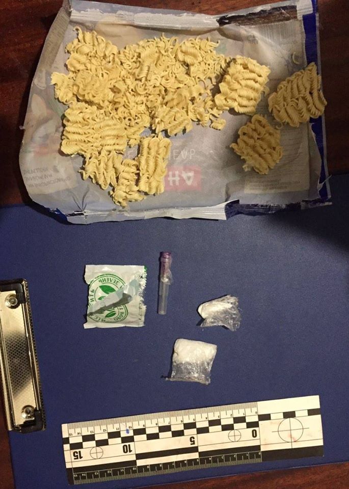 Два поліетиленових згортка із вмістом порошкоподібної речовини білого кольору було виявлено у середині пакетика від «Мівіни», повідомляє Бліц-Інфо з посиланням на Західне міжрегіональне управління з питань виконання кр. покарань/пробації.