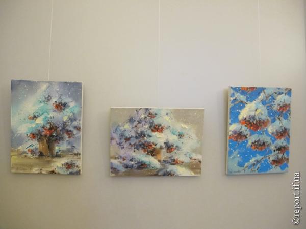 Отож, на виставці представлено 53 роботи. Це і портрети, пейзажі, а також картини на урбаністичну тематику. Найбільше робіт із зображенням квітів.