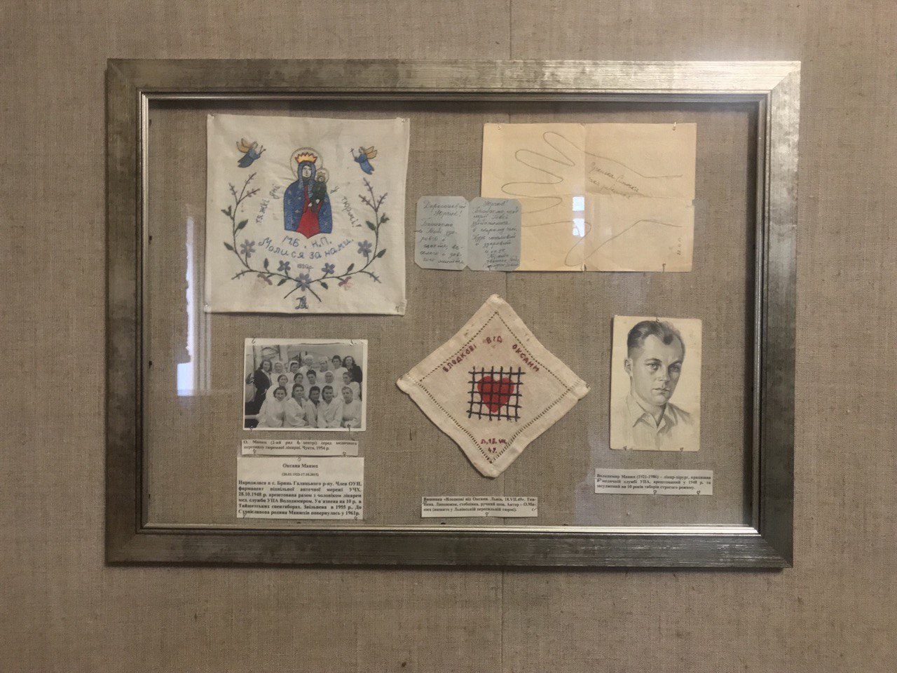 Заступниця директора музею Оксана Романів розповідає, що в основі колекції є фонд учасниці підпільної боротьби ОУН-УПА Оксани Манюх, який складає 56 одиниць та показує абсолютно все, чим жили в'язні. Яскравою є і її історія, адже її сина Юрка виховували родичі. На виставці представлений малюнок жінки на аркуші з вирваного зошита в клітинку на якому обведено руку і ногу сина з підписом "Ось така рученька завелика мого синочка" та "Ось така ніженька завелика мого синочка".