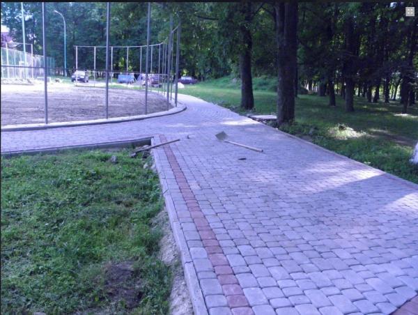 Наразі виконуються роботи по встановленню бруківки навколо льодового майданчика та ідуть підготовчі роботи до залиття фундаменту.