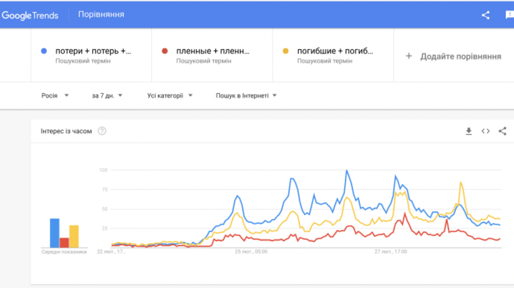 При цьому запит "погибшие" з 1 березня переважає над іншими двома.