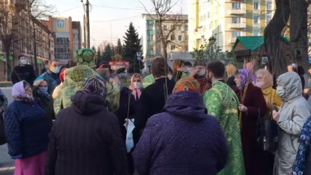 У Рівному священник Української православної церкви Московського патрірхату провів масове освячення вербових галузок. Трапилося це ще надвечір 11 квітня.