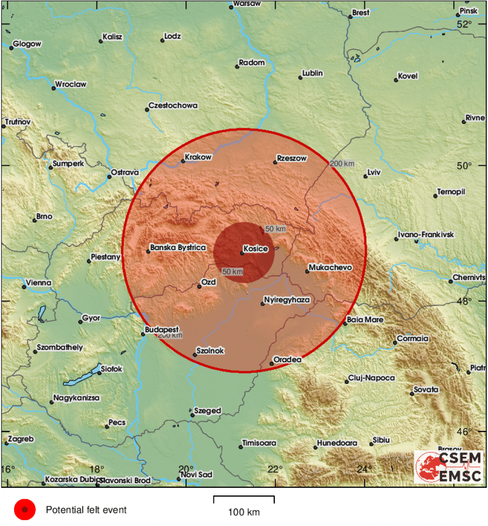Ввечері 9 жовтня у Словаччині поблизу міста Кошиці стався землетрус магнітудою 5,2 бала.