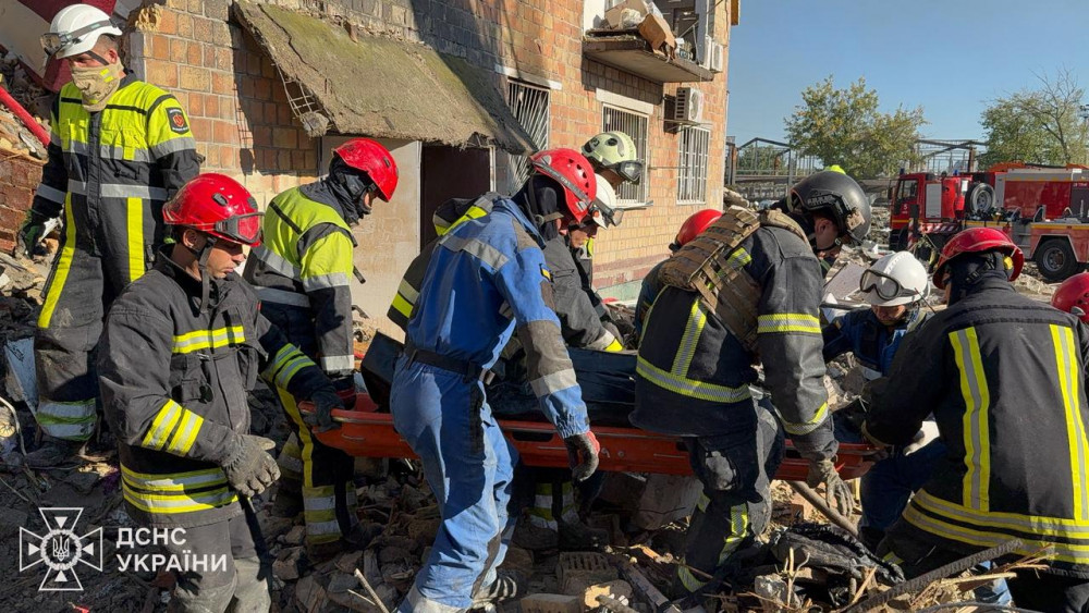 У Києві з-під завалів зруйнованої 5-поверхівки рятувальники дістали ще одне тіло. Таким чином внаслідок російського удару по столиці загинули 15 людей, з них 4 дитини.