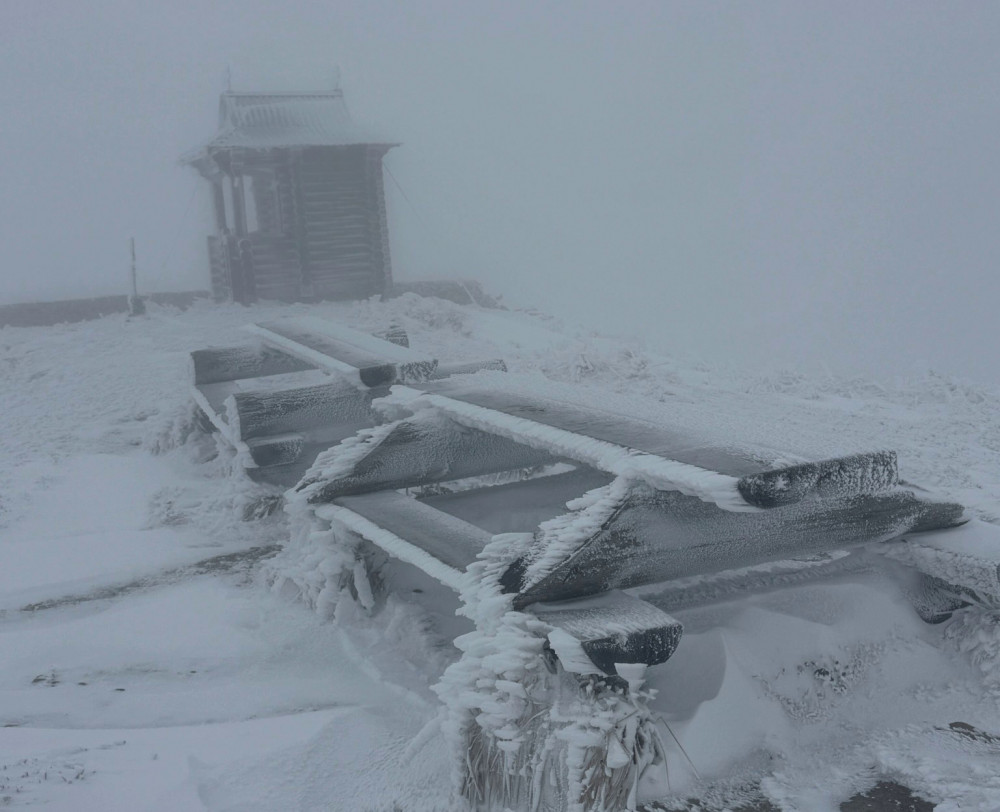 "Увага!!! Погіршення погодних умов! Станом на 08:25, 09.05.2025 на горі Піп Іван хмарно, туман, видимість обмежена. Вітер східний, північно-східний 10-12 м/с..Температура повітря -7°С", - йдеться у повідомленні.