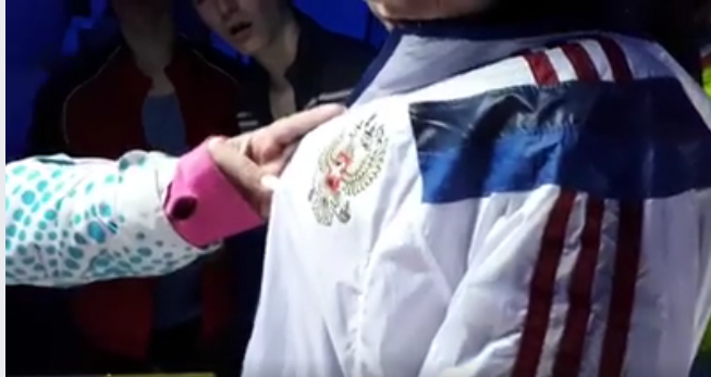У чемпіонаті України зі спортивної ходьби, що стартував сьогодні, 11 березня в Івано-Франківську бере участь учасник, одягнений у форму з російським гербом.