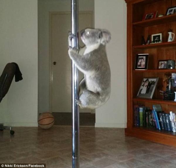 Як пише The Daily Mail, Ніккі Еріксон працює стриптизеркою і вдома у неї встановлений пілон. Читайте також На дні Маріанської западини виявили невідомих істот (відео) Повернувшись додому після важкого робочого дня, дівчина була дуже здивована, побачивши коалу, яка виконує прості трюки на жердині.