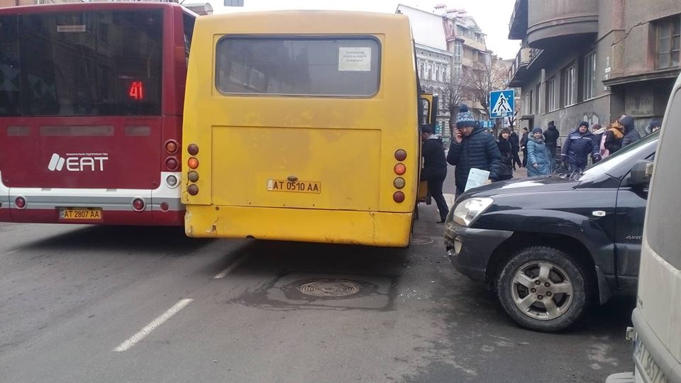 Біля "молочки" вулиці Січових Стрільців не розминулись маршрутка 37К та автомобіль "КІА". Останній виїзджав з вулиці Шашкевича.