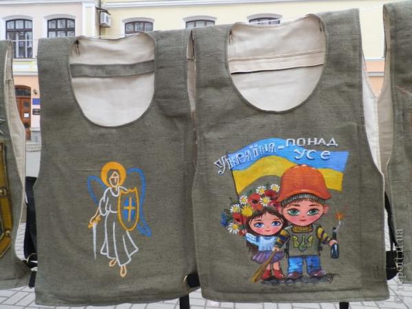 В Івано-Франківську місцеві художники розписали захисну амуніцію. Її волонтери рік тому пошили для активістів Євромайдану. Митці навіть влаштували спеціальну виставку. Усі розписані жилети продадуть на інтернет-аукціоні серед української діаспори у США. Зібрані гроші передадуть пораненим бійцям АТО. Відео ТСН.