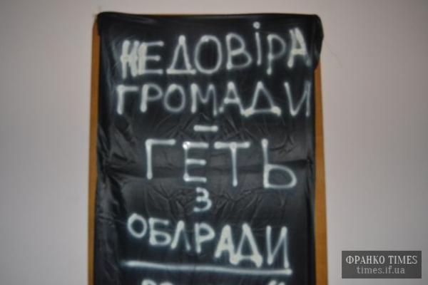 Сьогодні вночі, невідомі активісти, з метою не пустити на робоче місце заступника голови Івано-Франківської обласної державної адміністрації Зінаїди Болюк, забили двері її кабінету чорним полотном.