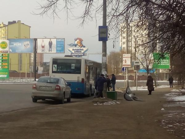 Один із нещодавно закуплених німецьких великогабаритних автобусів, через поломку зупинився на Довженка, навпроти заправки, де і простояв всі вихідні до обіду понеділка 25 січня.