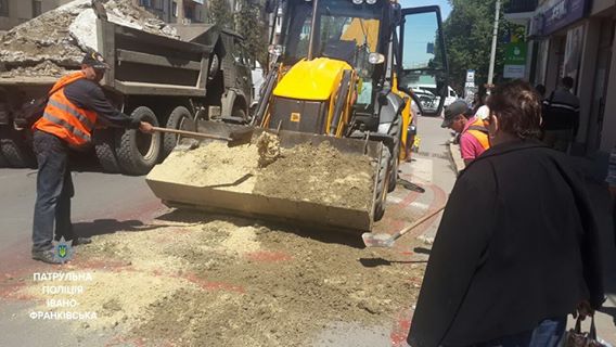 В Івано-Франківську патрульні склали протокол на водія, який розлив фарбу на дорогу