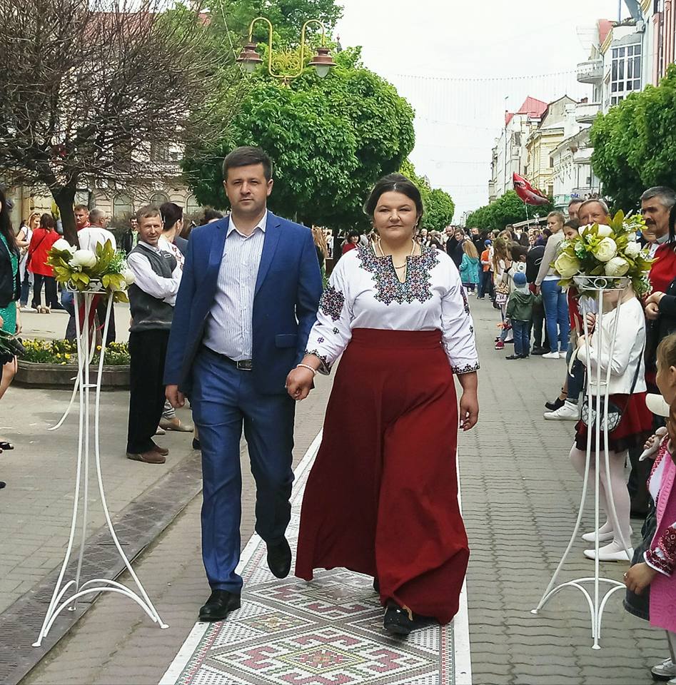У рамках святкування 355-річниці від дня заснування Івано-Франківська на пішохідній частині вулиці Незалежності для молодят розстелили великий весільний рушник.