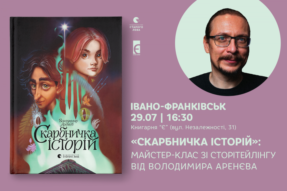Письменник Володимир Аренєв, автор трьох десятків книжок, серед яких «Скарбничка історій», де поряд із захопливою історією міститься унікальний посібник зі сторітелінгу, проведе для усіх охочих майстер-клас із писання історій.