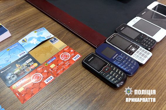Під час проведення обшуку в помешканні підозрюваних, яке вони винаймали у Івано-Франківську, правоохоронці виявили та вилучили 41 сім-картку мобільних операторів, мобільні телефони та банківські картки.