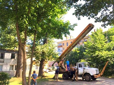 Сьогодні, 5 серпня "Зелене господарство" розпочало зрізку аварійних тополь на вулиці Заклинських.