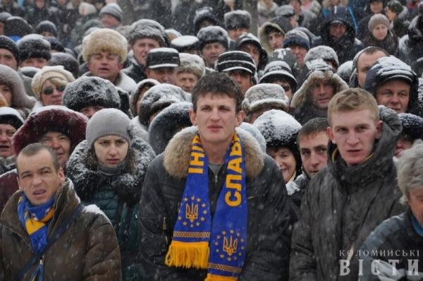 У Коломиї відбулося чергове недільне віче. На центральній площі міста зібралося кілька тисяч мешканців Коломийщини. Розпочалося все традиційно з гімну України та спільної молитви.
