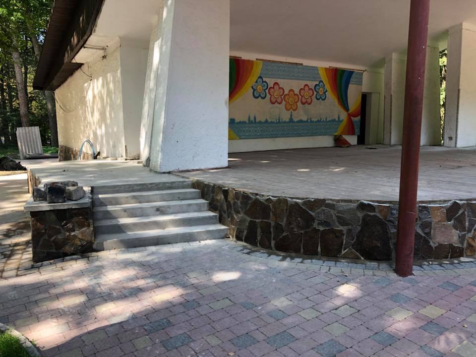 Цього року замінено дах, проведено облицювання природнім каменем, залито нові сходи. На черзі фарбування фасаду і повна заміна підлоги естради. І основне - влаштовано пандус. Тепер безперешкодно зможуть показати свої таланти і люди з обмеженими можливостями.