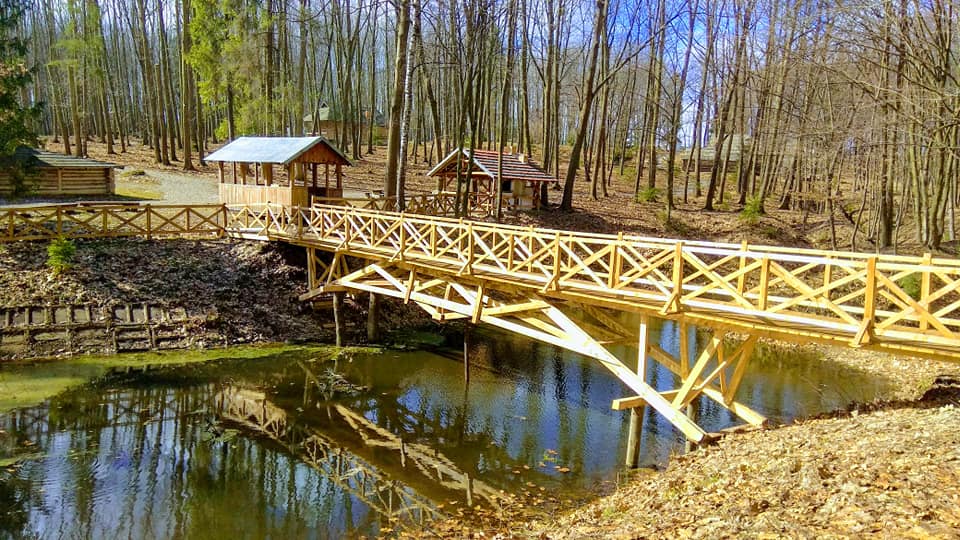 Для відвідувачів встановлені альтанки, які всередині обладнані освітленням та розетками, лавками та столами, простелили доріжки, побудували містки для переходів між ярами, вимуровали піч.