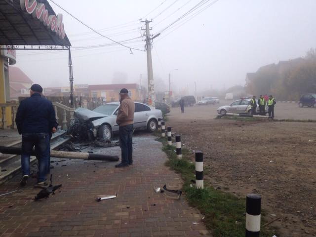 У результаті автомобіль зіткнувся із сходовою кліткою магазину, що знаходилась поблизу дороги.