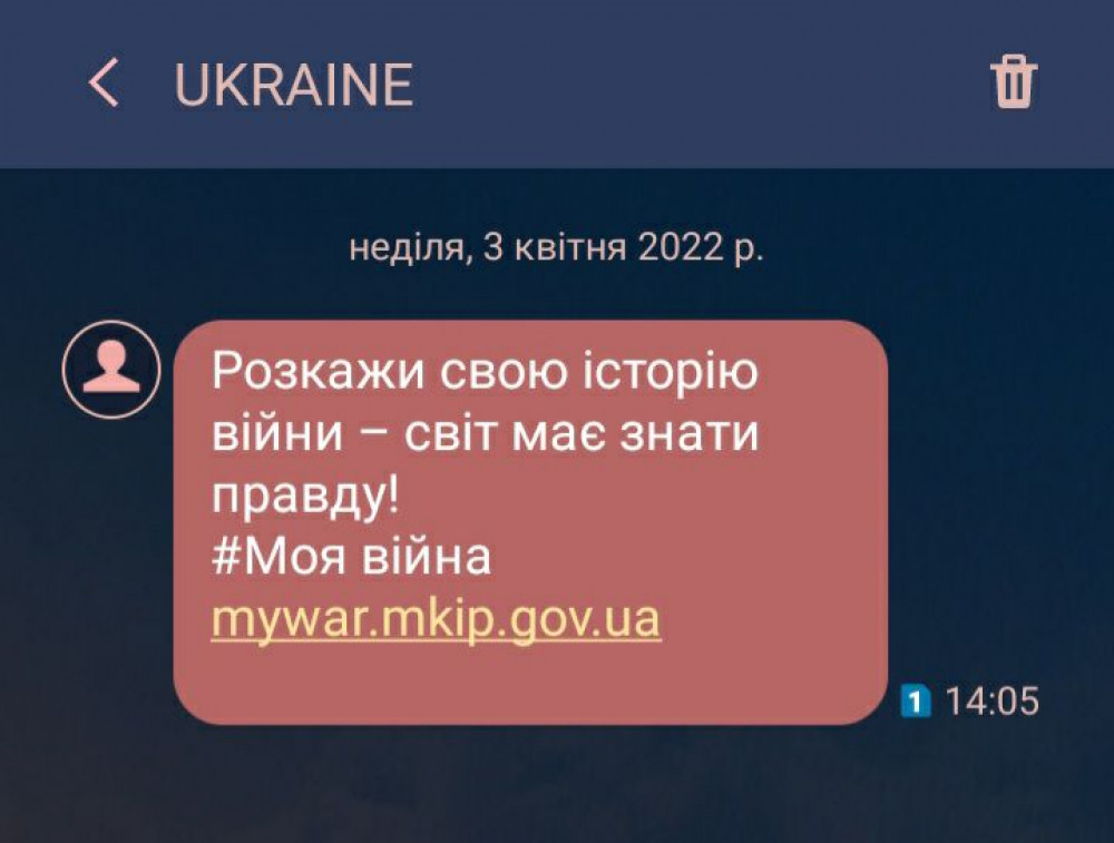 Українці 3 квітня почали отримувати повідомлення від абонента "Ukraine" із посиланням на mywar.mkip.gov.ua.