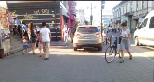 В середмісті Франківська панянка на джипі їздила тротуаром і ледь не врізалась в "сіті-лайт"