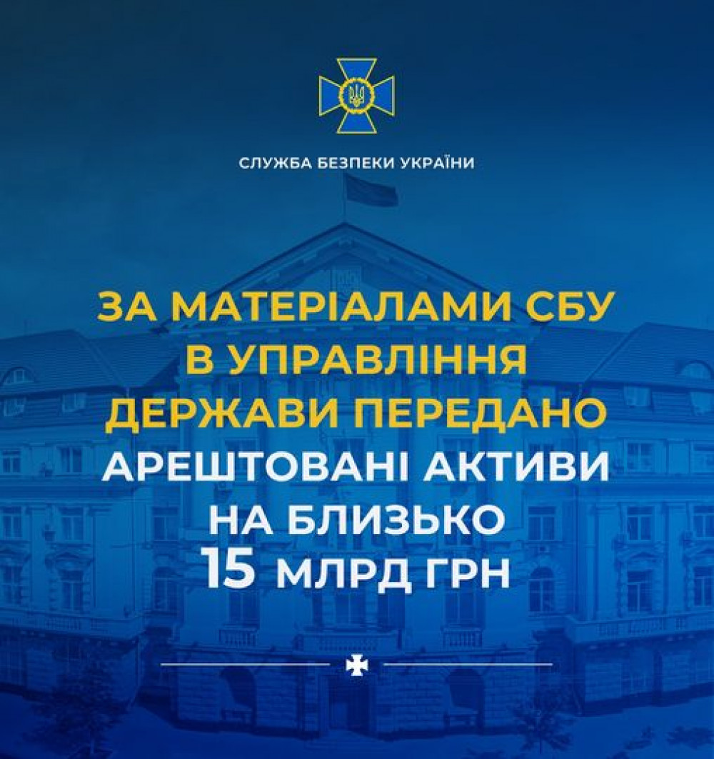 Упродовж цього тижня за матеріалами Служби безпеки до Національного агентства України з питань виявлення, розшуку та управління активами, одержаними від корупційних та інших злочинів (АРМА) передано арештовані активи на близько 15 млрд грн.