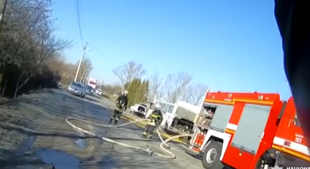 Поліцейський офіцер Загвіздянської територіальної громади обабіч дороги побачив рейсовий автобус, з-під якого палав вогонь.