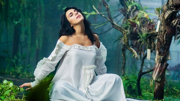 Співачка одягла білу довгу сукню, яка ніжно підкреслила округлий живіт. Плечі Джамали у стильному вбранні були відкритими. Сама ж сукня оздоблена світлими перлинами.