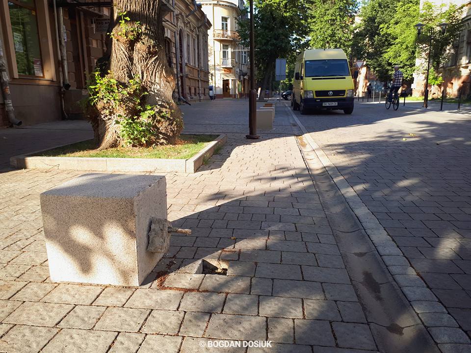 Вандили нищать антипаркувальні бетонні куби на Шевченка