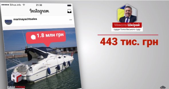 Суддя Голосіївського районного суду міста Києва Микола Шкірай є власником італійського катера Laver. Причому в його декларації вказано, що він придбав плавзасіб за 443 тис. грн, коли його справжня справжня вартість не менше 1,6 млн грн, стверджують журналісти.