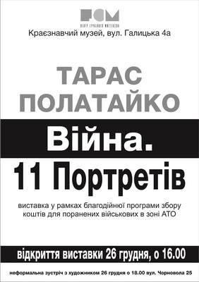 26 грудня 2014 року о 16.00 в Краєзнавчому музеї Івано-Франківська відбудеться відкриття виставки Тараса Полатайка «Війна. 11 Портретів».