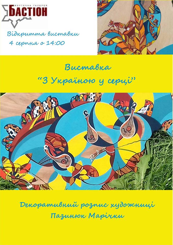 4 серпня о 14.00 год у фортечній галереї «Бастіон», що в місті Івано-Франківськ, відбудеться відкриття виставки «З Україною в серці» Марічки Пазинюк, присвяченої Дню Незалежності України.