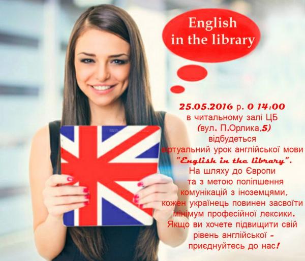 25 травня о 14:00 в читальному залі Центральної бібліотеки ( вул. П. Орлика, 5) відбудеться віртуальний урок англійської мови