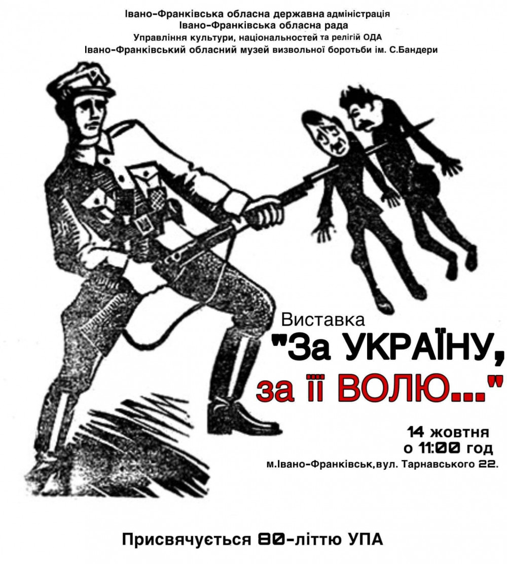 14 жовтня о 11:00 в обласному музеї визвольної боротьби розпочнеться виставка "За Україну, за її волю", присвячена до 80-річчя заснування Української повстанської армії.