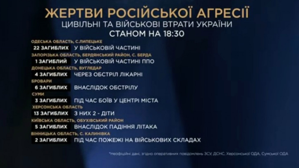 За оперативними даними, в результаті російського нападу загинуло 57 українців. Ще 169 – поранено.