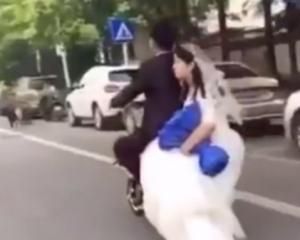У Китаї молодий наречений втратив свою наречену під час поїздки на скутері. Дівчина впала з транспортного засобу після того, як мотоцикл підскочив на "сплячому поліцейському".